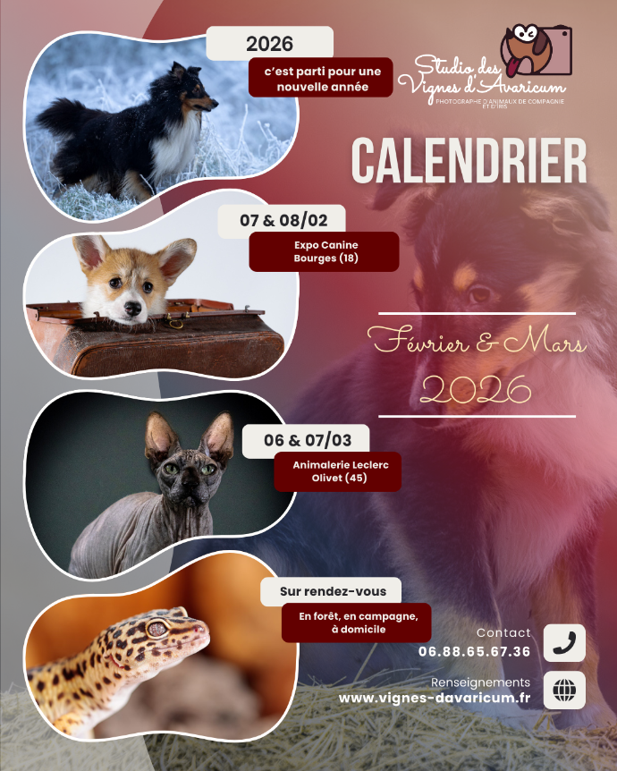 Faites photographier vos chiens, chats, lapins, reptiles et de tous vos animaux préférés